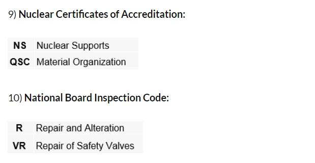 이 자격을 갖고 있는 회사는 ASME Code의 요건에 따라 기자재를 설계, 제작, 설치하고 Authorized Inspection Agency(공인검사기관)의 소정의 검사를 받은후 ASME Code의 모든 요건을 만족하였다는 표시로서 ASME의 Symbol Stamp를 제품에 각인함으로서 궁극적으로 기자재가 일정수준의 품질을 유지하고 있음을 객관적으로 증명하게 된다.